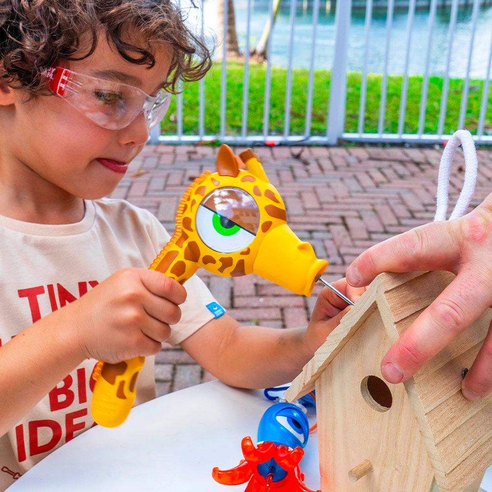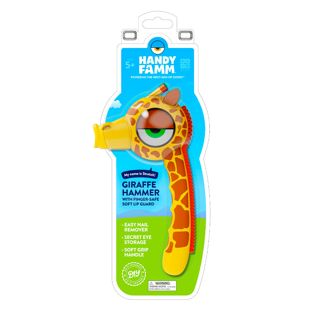Handy Famm’s Stretch the Yellow Giraffe Hammer helps kids build confidence and coordination through safe, hands-on learning. Designed for small hands and big imaginations, it introduces real hammering skills while encouraging focus and creativity. Built from durable, non-toxic materials, this kid-sized hammer is both fun and functional—perfect for early STEM exploration and pretend building at home or in the classroom.