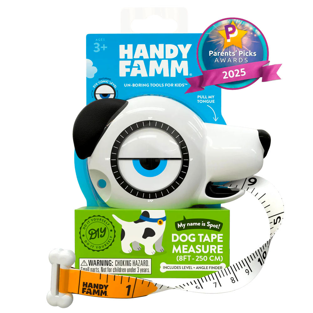 The Handy Famm 4-in-1 STEM Starter Tool featuring Spot the Black and White Dog brings learning to life with real, functional tools designed for kids. Fido helps young builders explore measurement, balance, and precision through hands-on play at home or in the classroom. Built from durable, non-toxic materials and sized for small hands, this tool is both fun and safe—perfect for early STEM exploration for ages 3 and up.